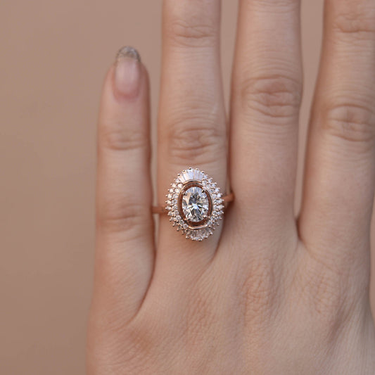 Oval Cut Diamond Cluster Moissanite Diamond Engagement Ring For Her