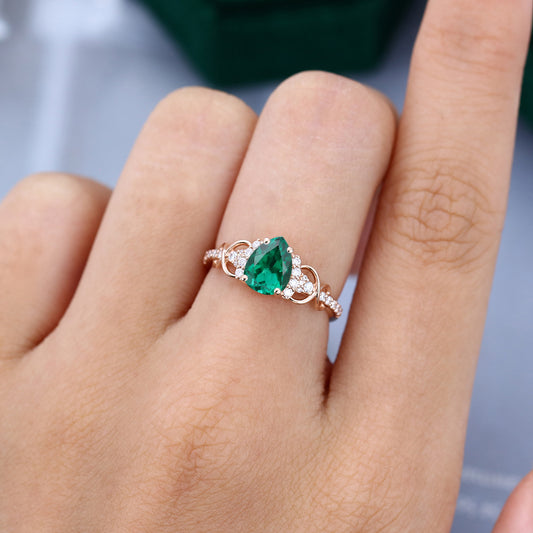 Pear Cut Green Stone Unique Design Engagement Ring For Women