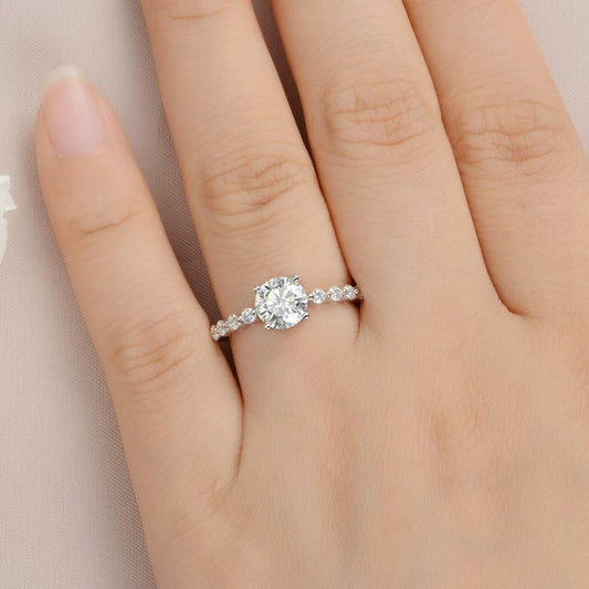 Brilliant 1 CT Round Cut Moissanite Engagement Ring Side Accent Stone Ring