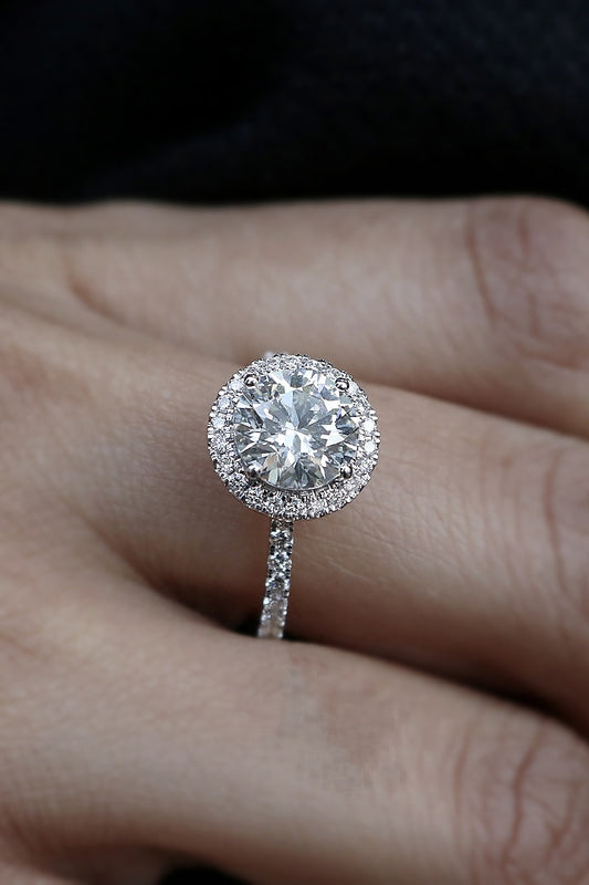 Round Brilliant Cut Halo Moissanite Engagement Ring Vintage Ring / Art Deco Single Halo Ring