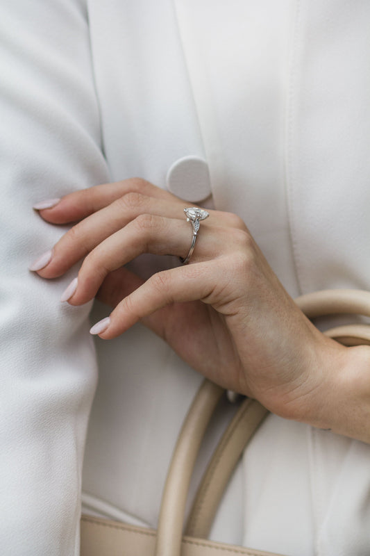 Pear Shape Round Cut Moissanite Diamond Engagement Ring For Her Minimalist Style