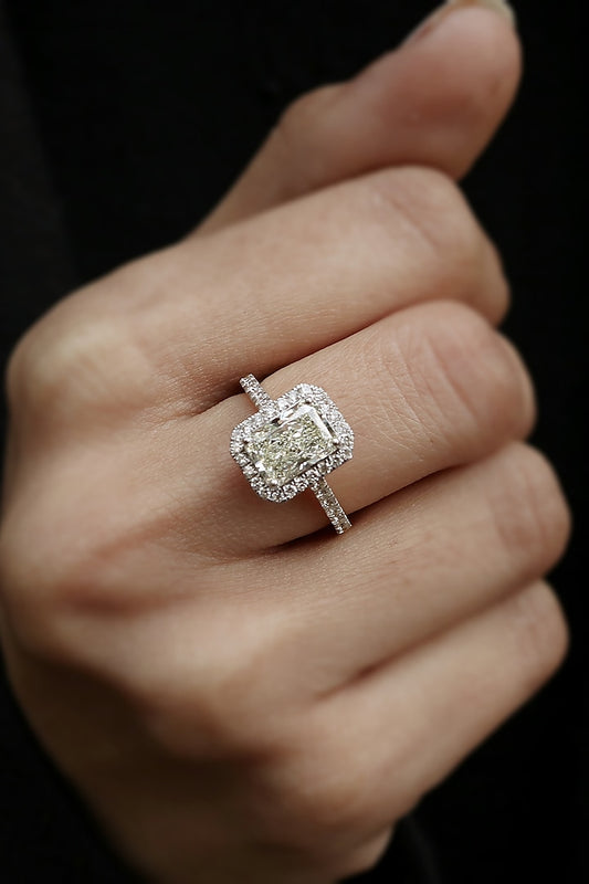 Radiant Cut Hidden Halo Moissanite Diamond Engagement Ring For Her