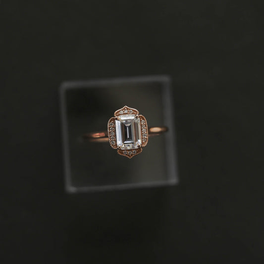 Emerald Cut Moissanite Vintage Cluster Diamond Engagement Ring For Her
