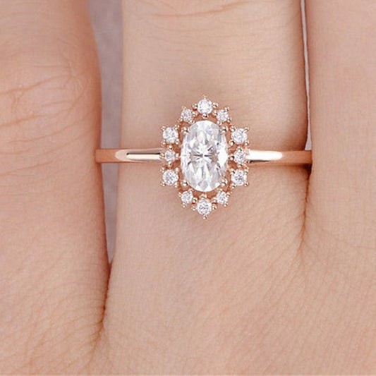Oval Cut Moissanite Engagement Ring Diamond Cluster Ring Minimalist Style Gift For Her