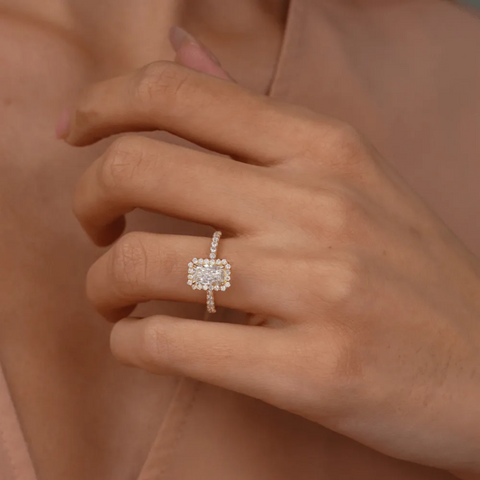 Radiant Cut Moissanite Solitaire Ring Halo Engagement Ring For Her