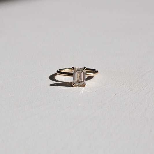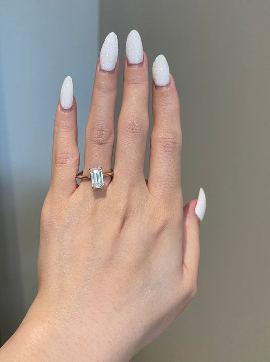 Emerald Moissanite Solitaire Engagement Ring Simplest Diamond Ring