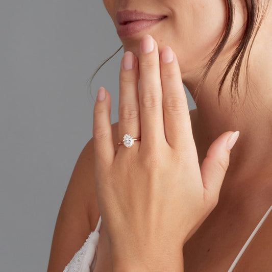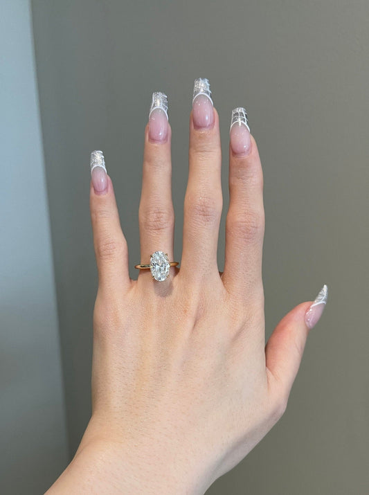 Oval Cut Hidden Halo Solitaire Moissanite Diamond Engagement Ring