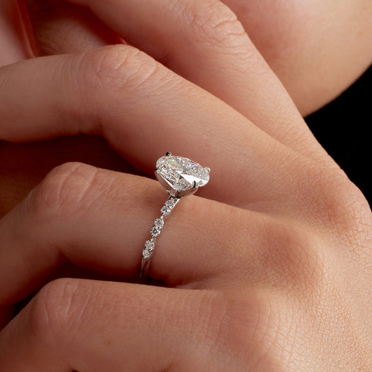 Oval Cut Migraine Solitaire Moissanite Diamond Engagement Ring