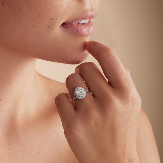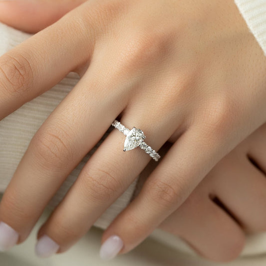 Pear Moissanite Hidden Halo Pave Setting Engagement Ring Anniversary Ring