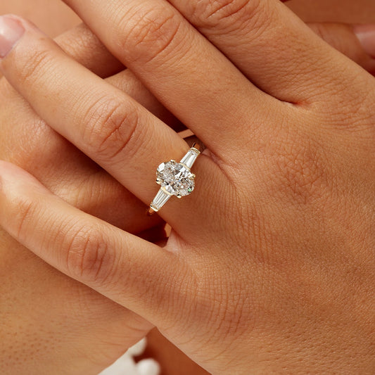 Oval & Baguette Cut Three Stone Moissanite Diamond Engagement Ring