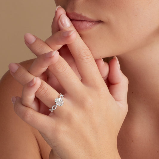 Oval Cut Moissanite Diamond Cluster Engagement Ring Dainty Ring