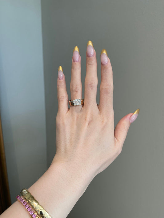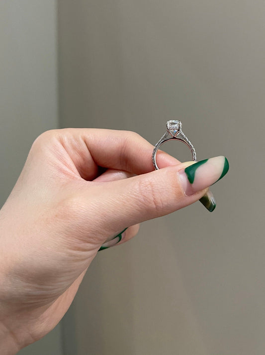 Cushion Moissanite Hidden Halo Pave Setting Engagement Ring