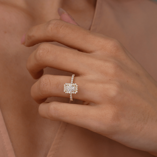 Emerald Cut Hidden Halo Moissanite Diamond Engagement Ring