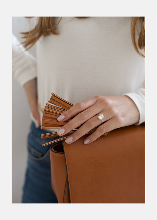 Oval Cut Hidden Halo Solitaire Moissanite Diamond Engagement Ring
