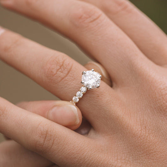 Round Cut 6 Prong Moissanite Solitaire Engagement Ring Side Stone Ring
