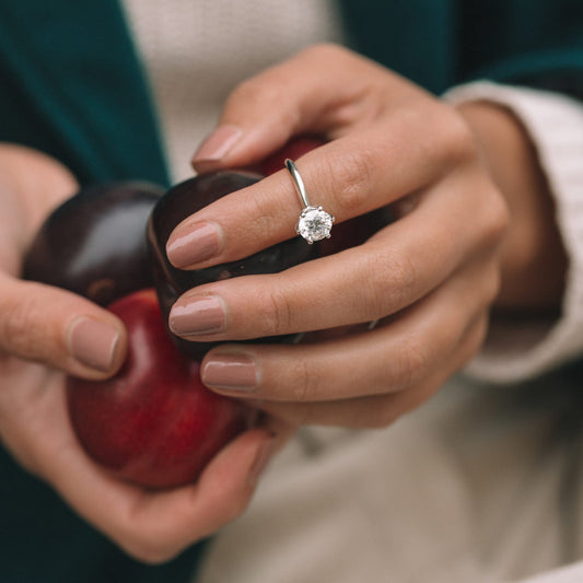 Round Cut Moissanite Solitaire Engagement Ring Alternative Ring Of Minimalist Style