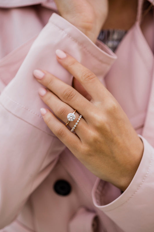 Round Moissanite Hidden Halo Pave Setting Engagement Ring For Her
