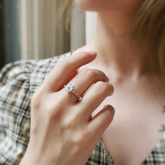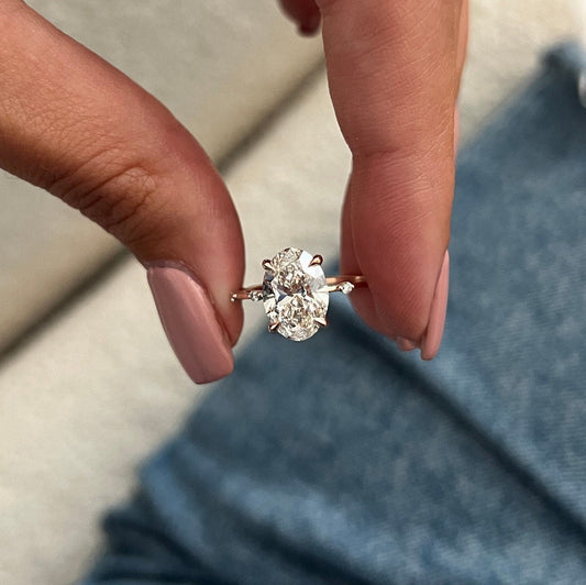 Oval Cut Moissanite Pave Setting Engagement Ring Side Accent Stone Ring