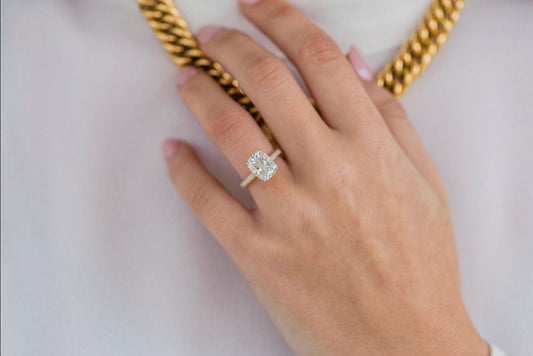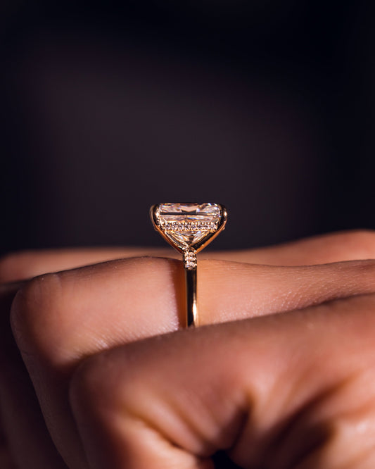 Radiant Cut Moissanite Hidden Halo Pave Engagement Ring