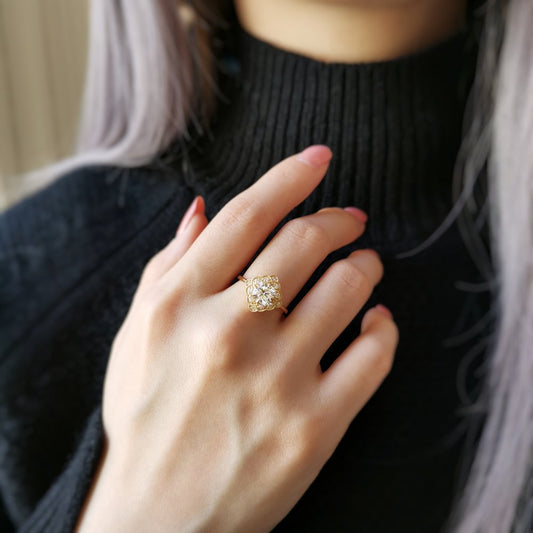 Radiant Cut Moissanite Unique Halo Engagement Ring Art Deco Ring