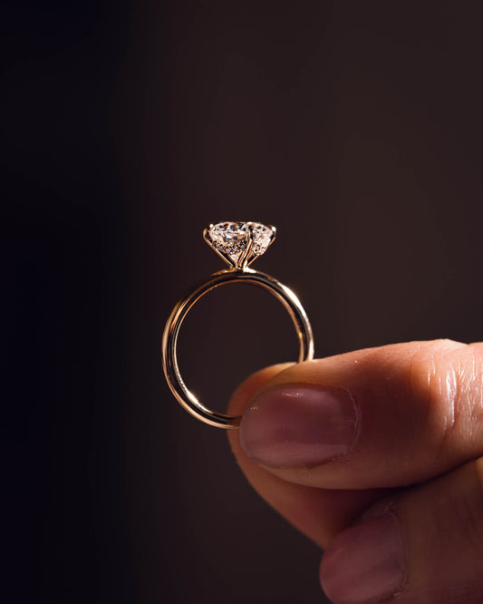 Round Cut Moissanite Hidden Halo Engagement Ring Simple Dainty Ring For Her