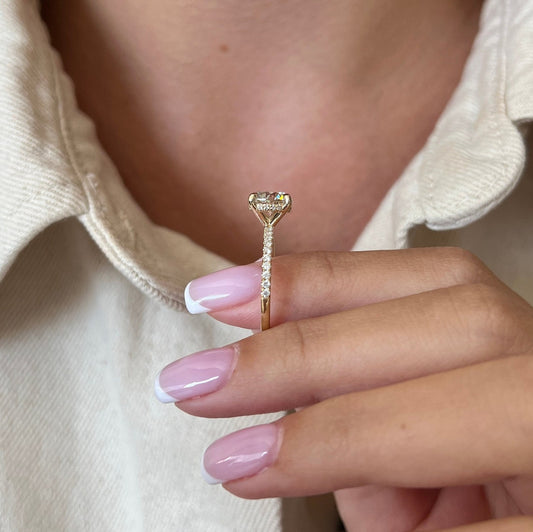 Cushion Cut Moissanite Hidden Halo Pave Engagement Ring Minimalist