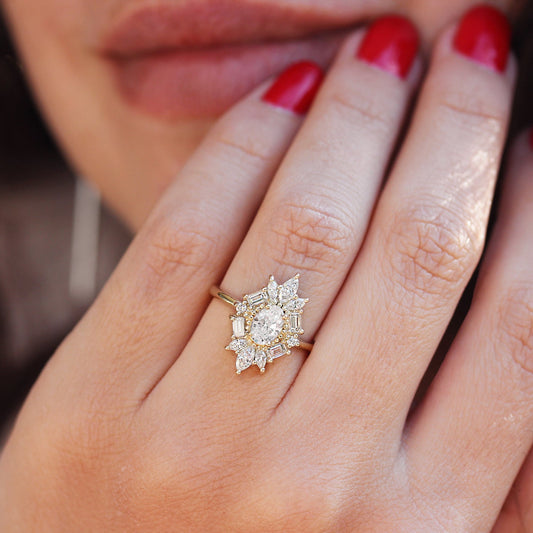 Oval Cut Moissanite Unique Art Deco Engagement Ring Vintage Gemstone Diamond Ring