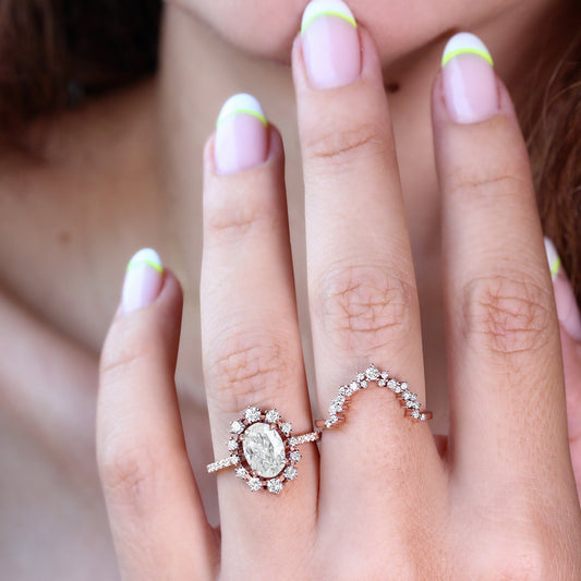 Oval Cut Moissanite Unique Halo Engagement Ring Alternate Ring