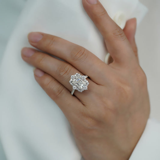 Crushed Ice Radiant Moissanite Halo Pave Setting Engagement Ring