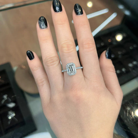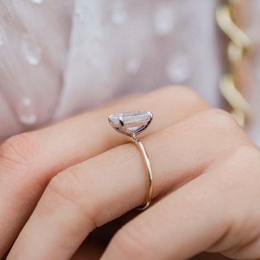 Emerald Cut 1 CT Moissanite paced Diamond Setting Engagement Ring