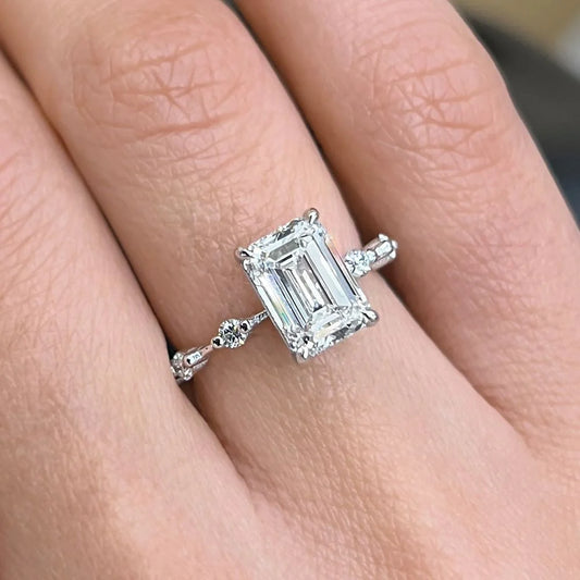 Emerald Cut Moissanite Side Accent Stone Engagement Ring Women's Ring