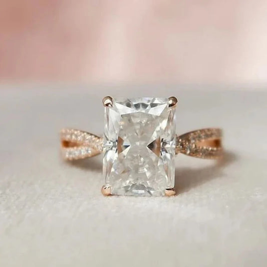 Radiant Cut Moissanite Unique Engagement Ring Personalised Ring