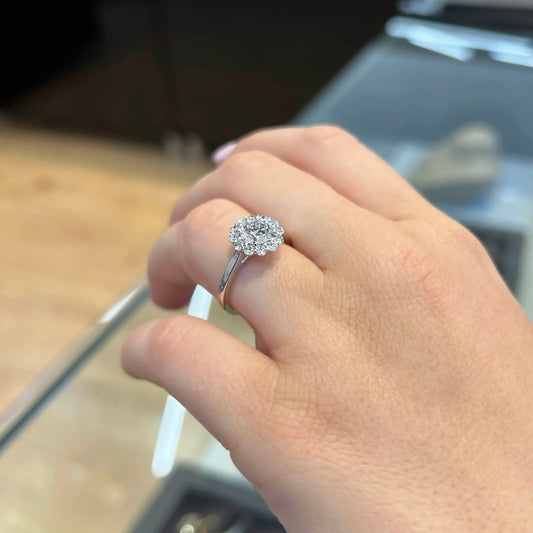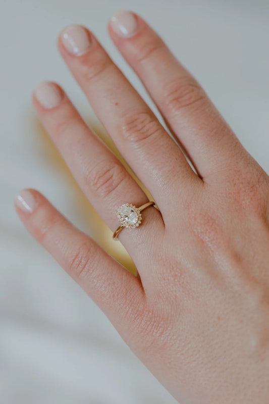 Oval Shaped Moissanite Halo Pave Setting Engagement Ring