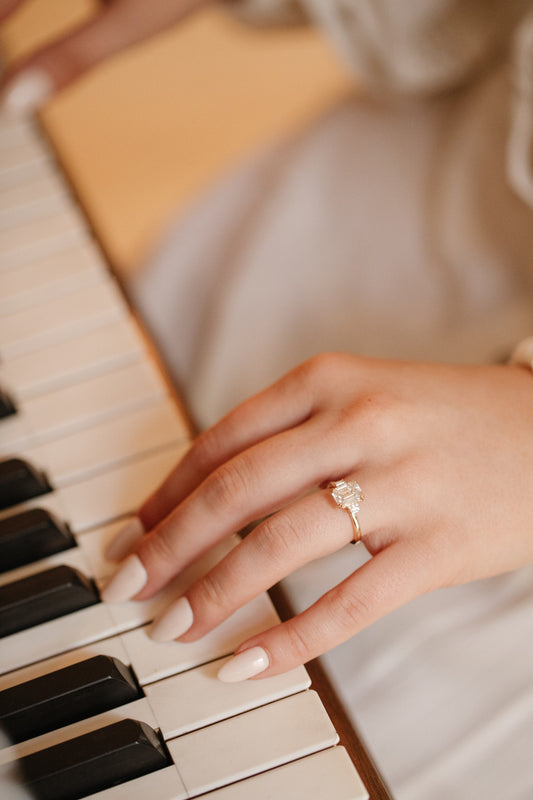 Emerald Cut Moissanite Three Stone Diamond Engagement Ring
