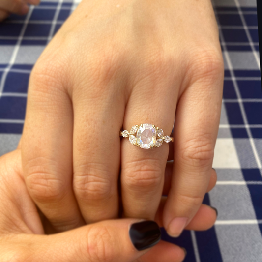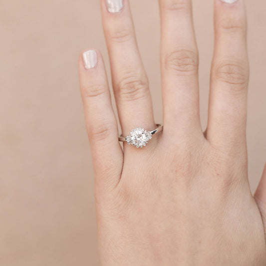 Round Cut Diamond Cluster Moissanite Engagement Ring Vintage Ring For Her