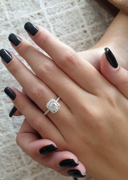 Cushion Cut Moissanite Diamond Halo Engagement Ring Wedding Ring