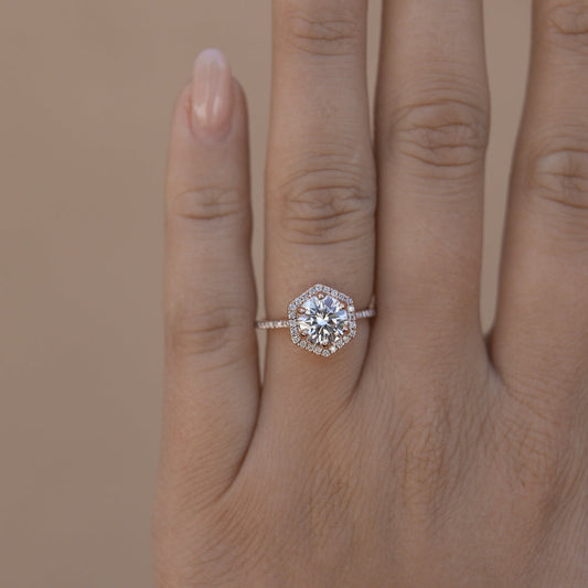 Round Moissanite Halo Diamond Ring / Half Paved Engagement Ring Gift For Her