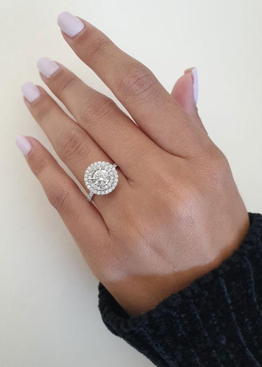 Round Brilliant Cut Double Halo Paved Engagement Ring Diamond Cluster Ring
