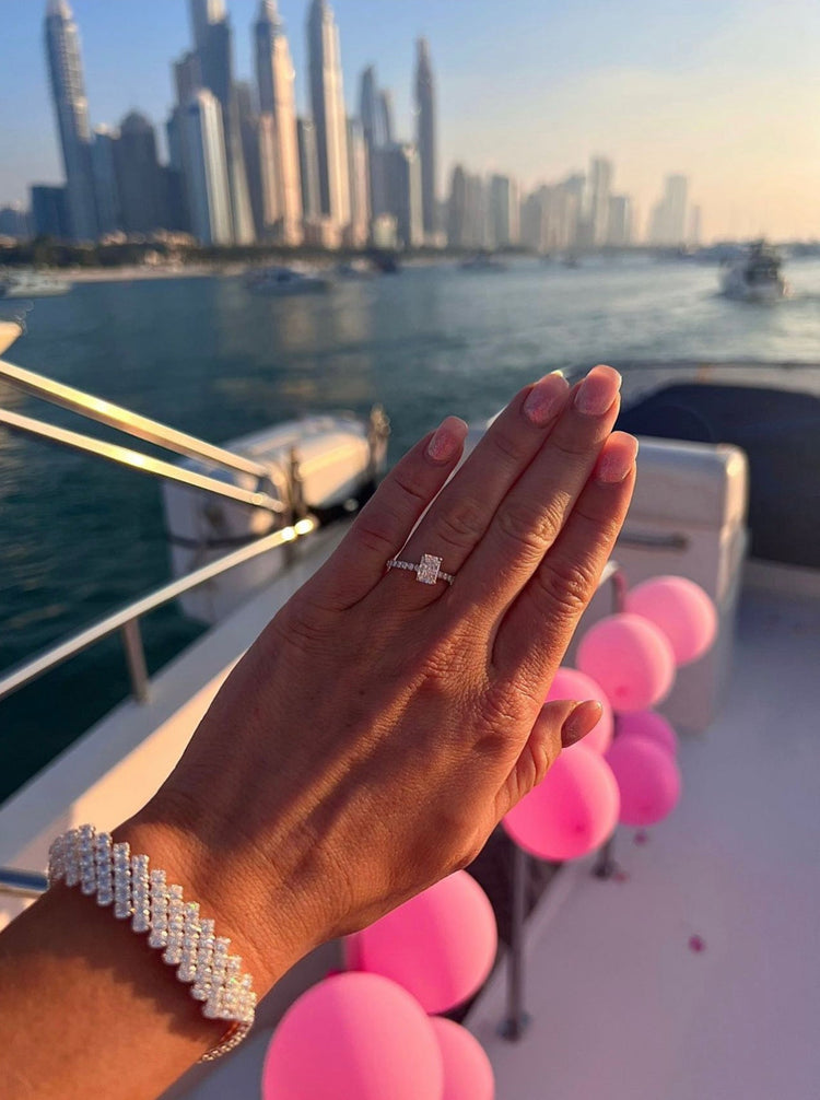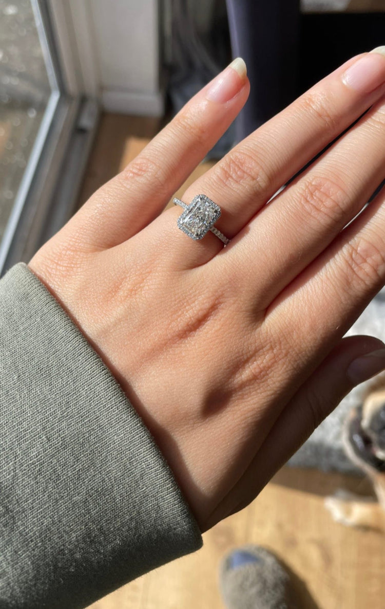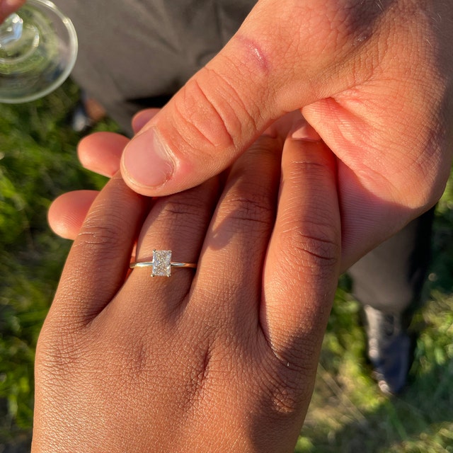 "I am in love with my engagement ring from Eurus! It's the perfect blend of classic and modern. The diamond quality is outstanding, and the setting is beautiful."