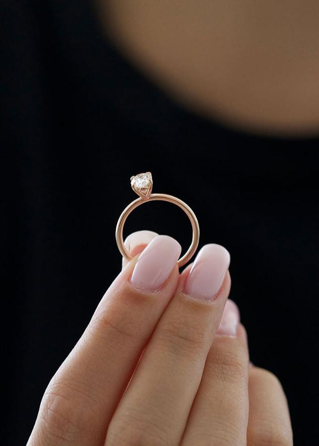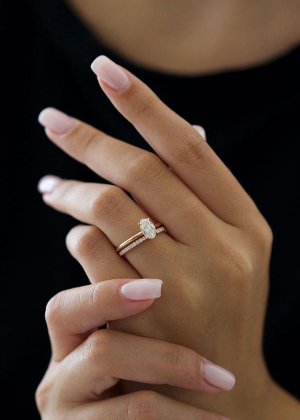 Oval Cut Moissanite Simple Solitaire Diamond Engagement Ring